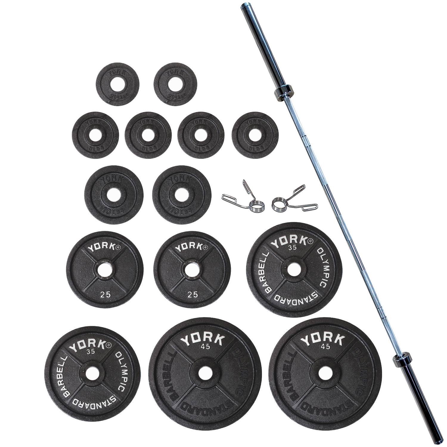 York Barbell 2โณ Cast Iron 300 Pound Olympic Weight Plate Set