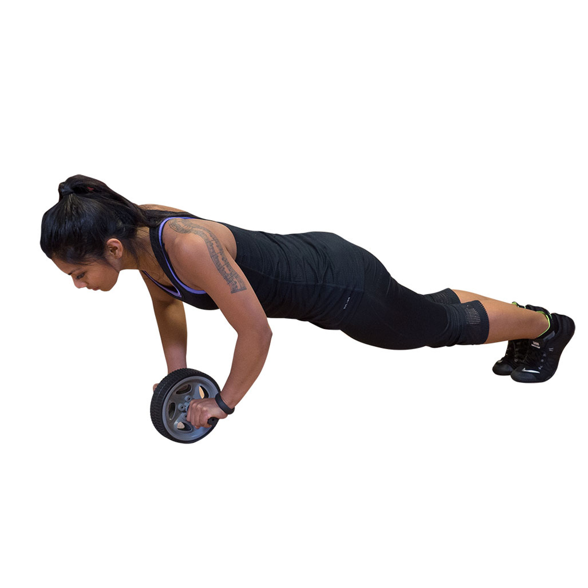 The Body-Solid Tools Ab Wheel is the perfect tool to strengthen and tone your abs, shoulders, arms, and back. It features 2 wheels for added stability and comfortable plastic grips. It is so effective because it forces you to isolate the stomach and oblique muscles while you work out. This enables you to effectively develop and strengthen the stomach area. Simple, easy to use and compact.