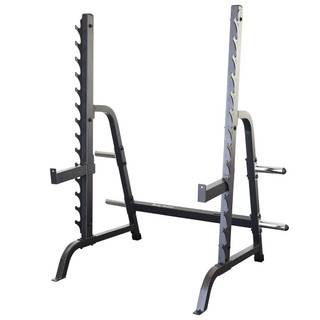 Description: Fitness professional, coaches, and personal trainers agree that a heavy-duty rack with easy-to-use adjustments and a barbell set go a long way in the world of strength training. Free weight training is most effective when the user feels safe enough to use heavy weight and push the envelope. Body-Solid is here to make sure you get the absolute most from your workout., the ability to push your limits, the room to excel. Our Full Commercial Olympic Multi-Press Rack is an industrial strength training partner that doesn’t try to change how you workout, it works with you.