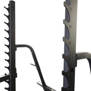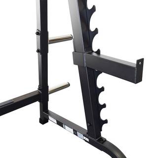 Workout well with a versatile commercial Olympic Multi-Press Rack that you can use for upper body and lower body exercise routines. Adjustable bar holders and olympic weight plate horns on this multi-press rack helps you workout effectively and in an organized fashion.
