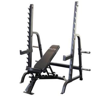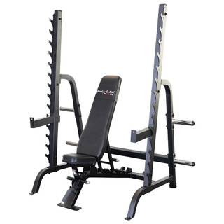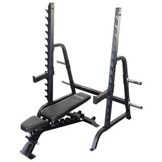 Fitness Professionals, Coaches and Trainers agree that the highly efficient Combo Bench/Squat Package by Body-Solid is a perfect fit for any Fitness Facility. The Bench/Rack combination gives users the ability to utilize squats, bench presses, incline and shoulder presses in a small space efficient footprint.