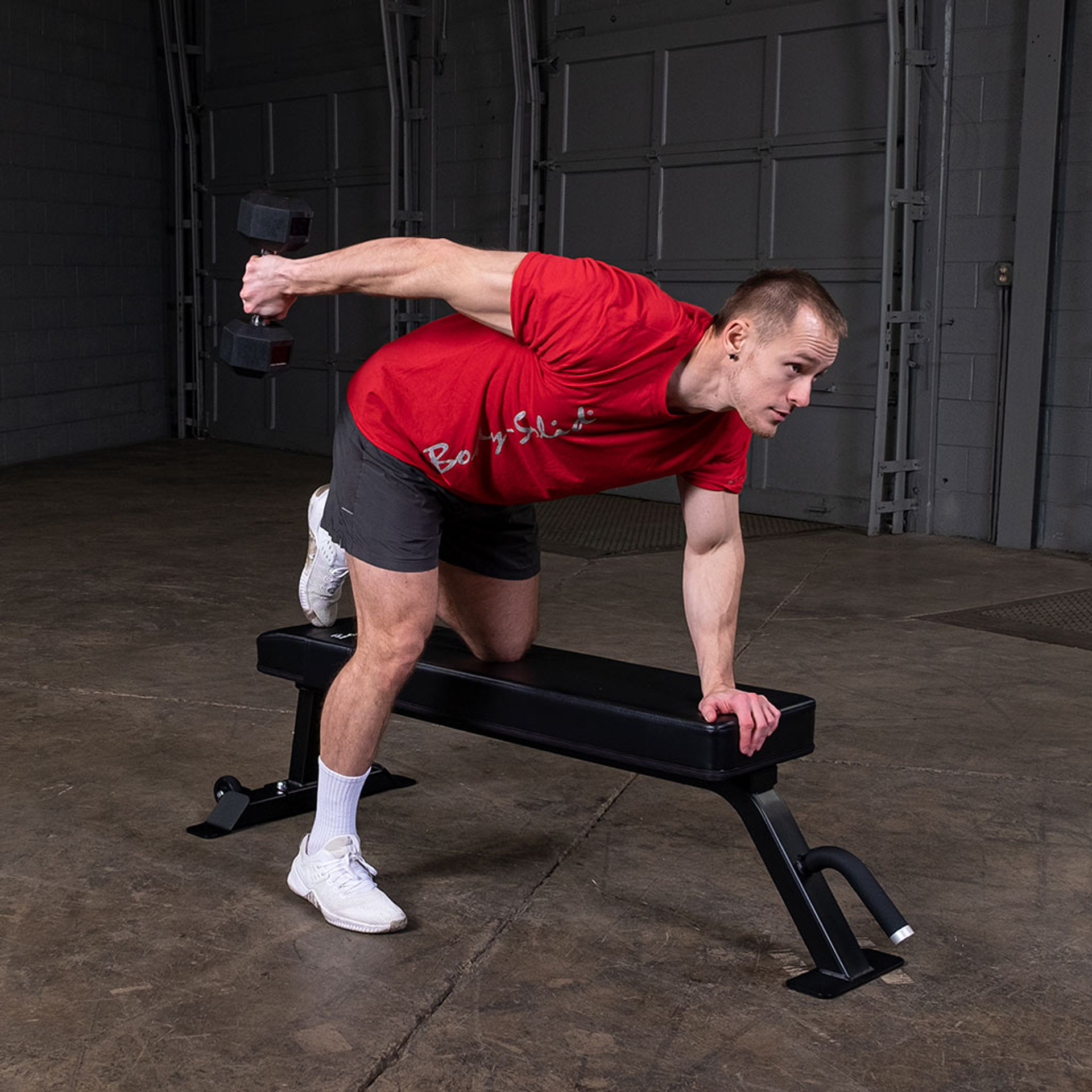 The Body-Solid Pro Clubline SFB125 Flat Bench is a no-frills flat workout bench with extra-thick upholstery and a heavy-duty steel base. Constructed with a 2×3” 11-gauge steel frame and a high-density 12” wide pad, the SFB125 Flat Bench is a solid and stable platform for bench press, dumbbell flys, skull crushers, dumbbell rows, triceps kickbacks and more.