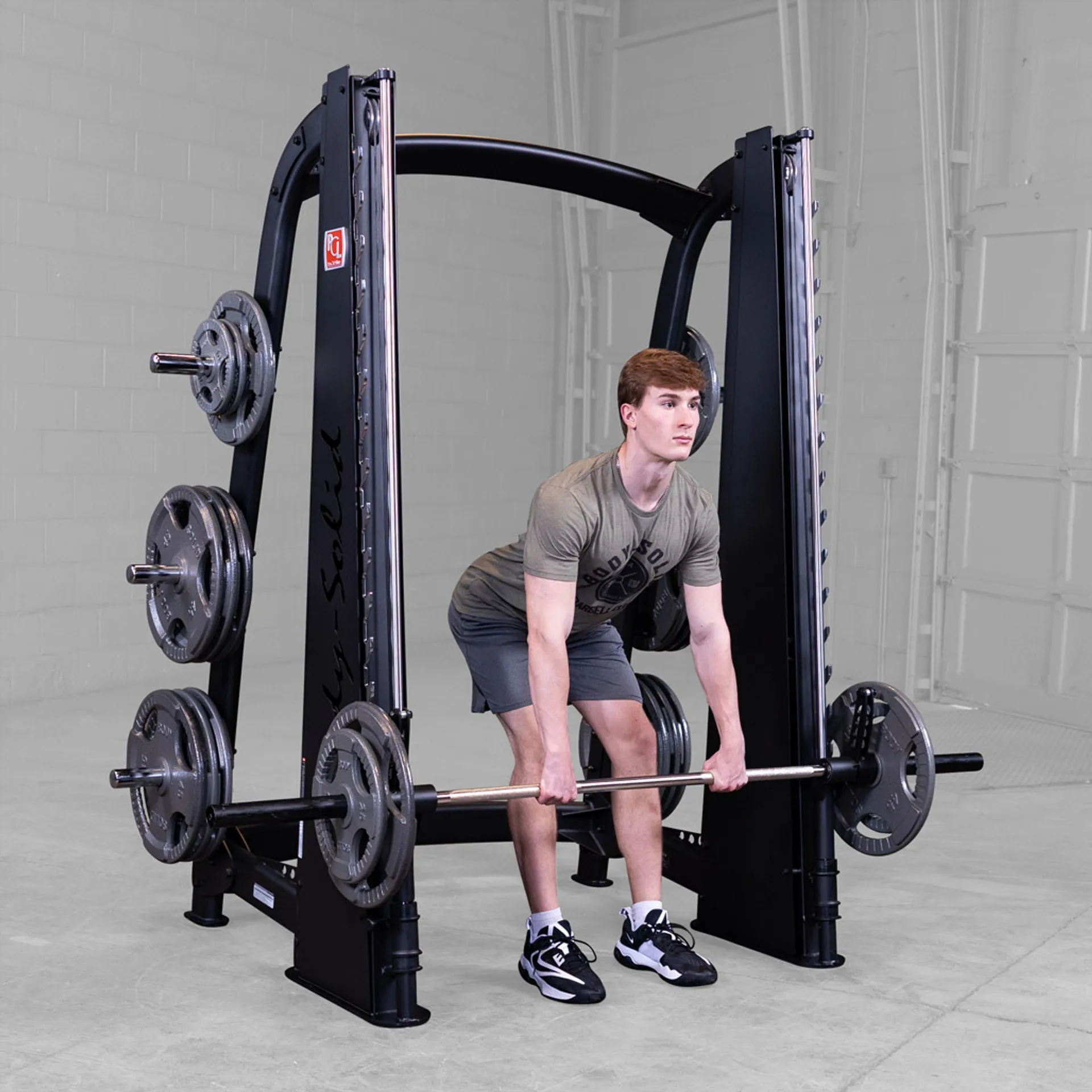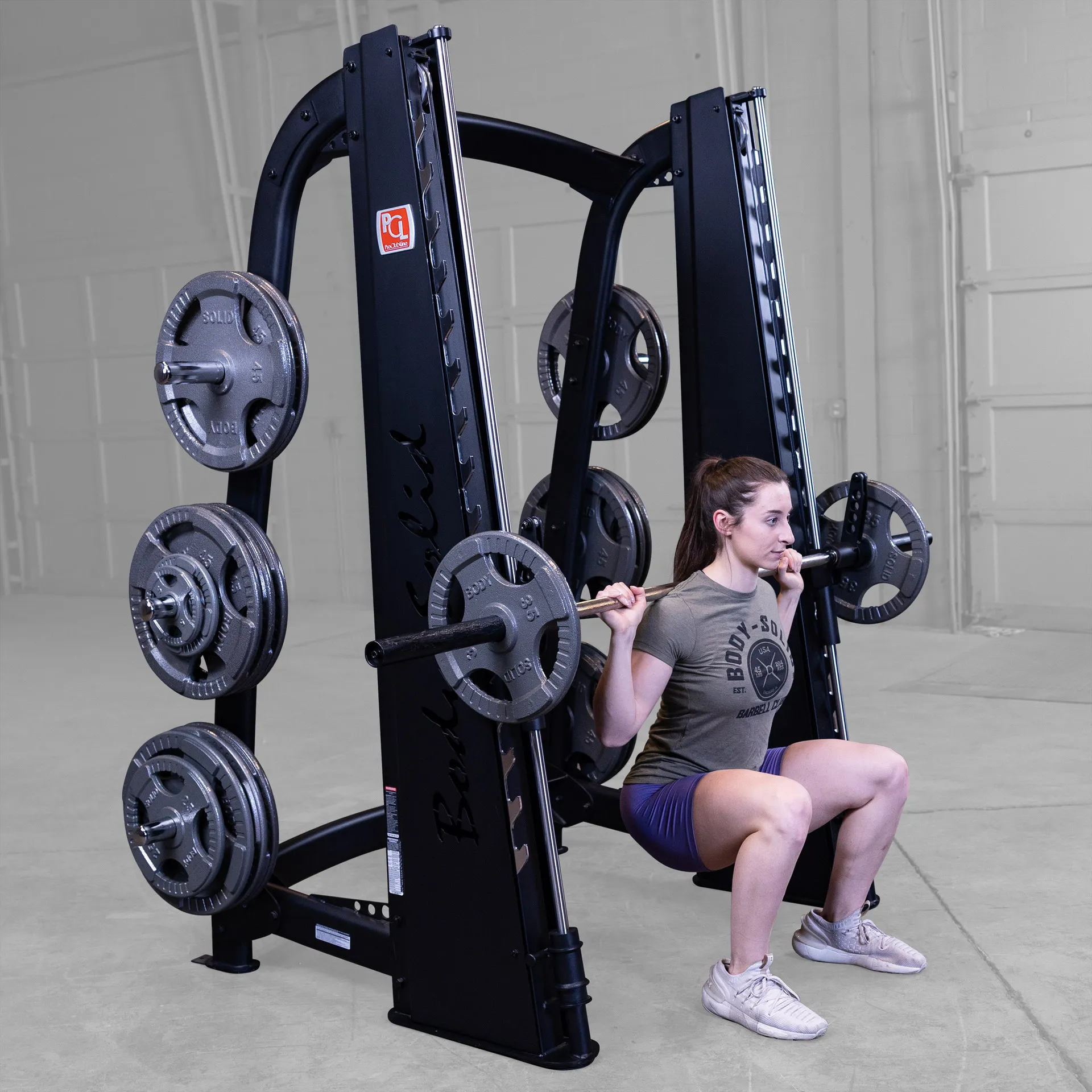 Featuring a reverse pitch and silky smooth vertical carriage, the Body-Solid Pro ClubLine Smith Machine ensures freedom of biomechanically correct movement, enabling users to perform a wide range of routines.