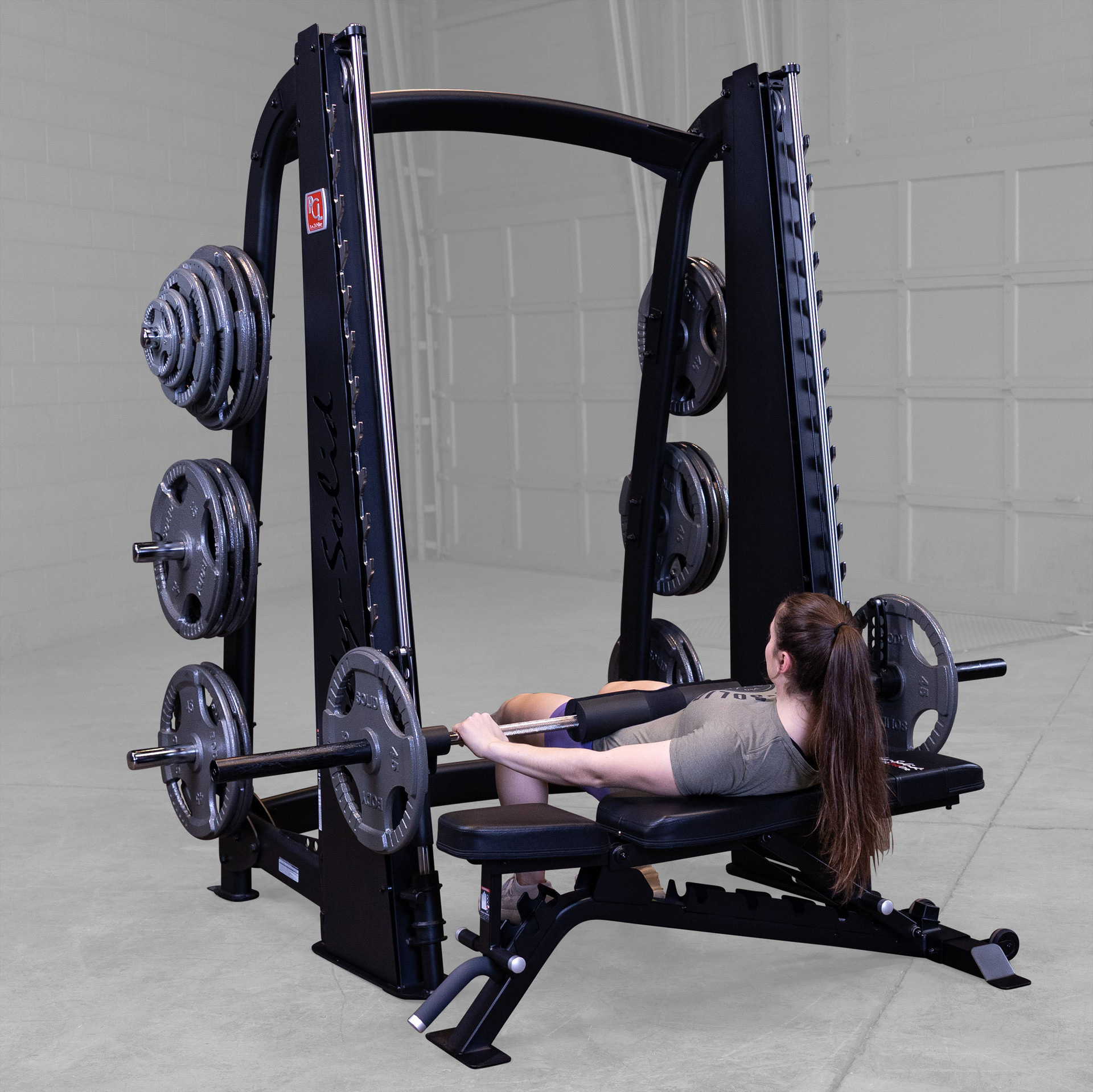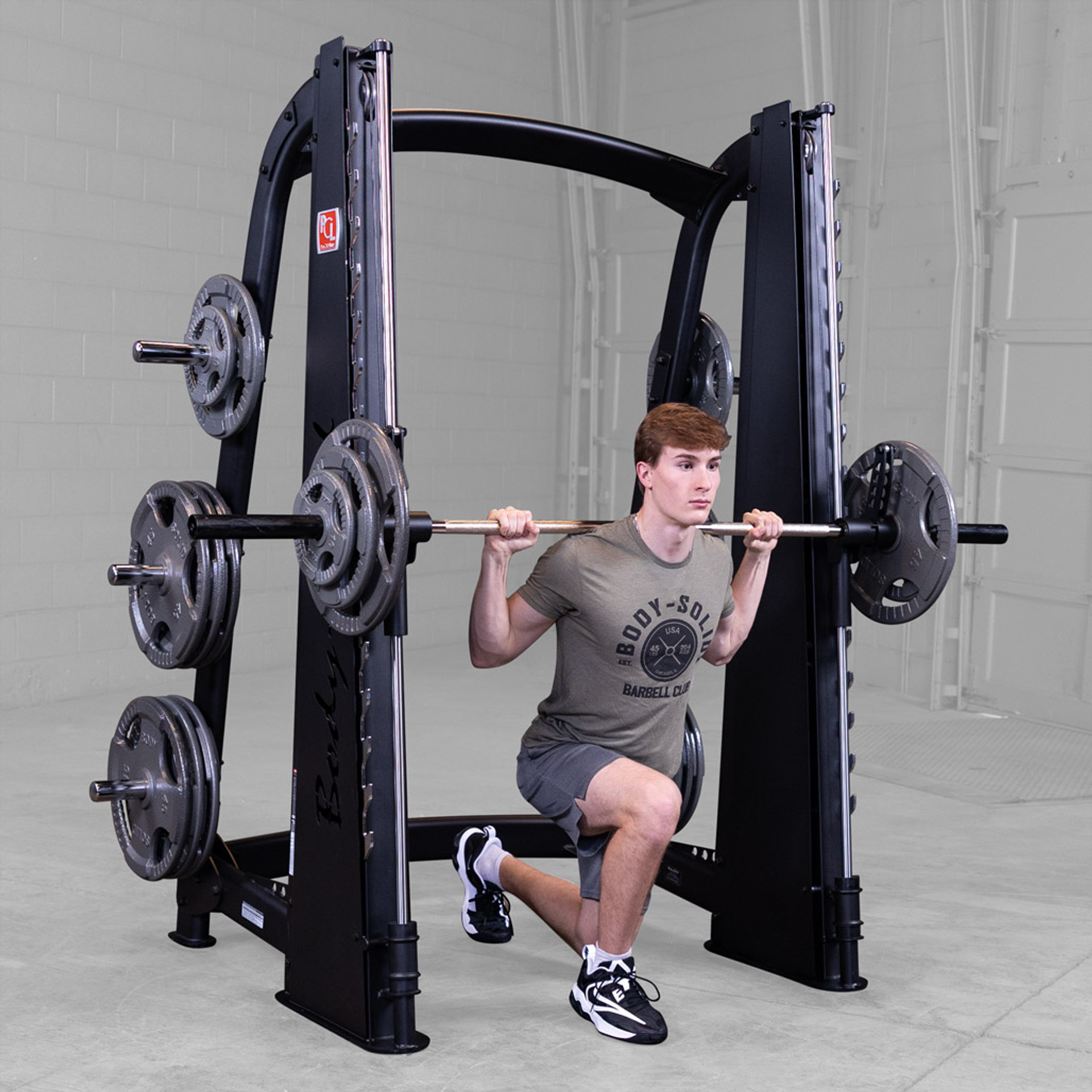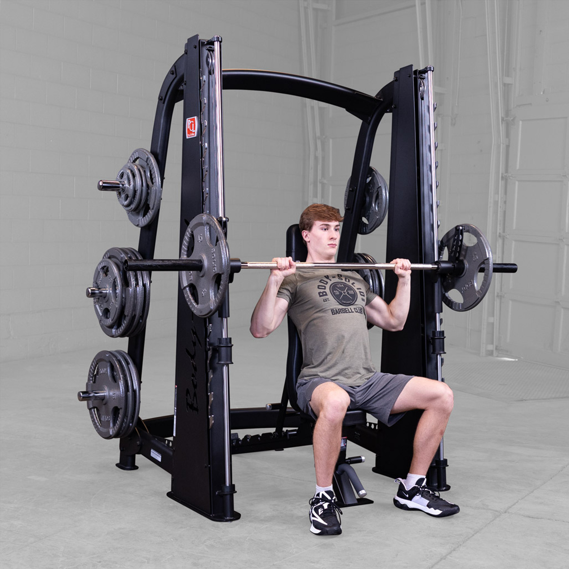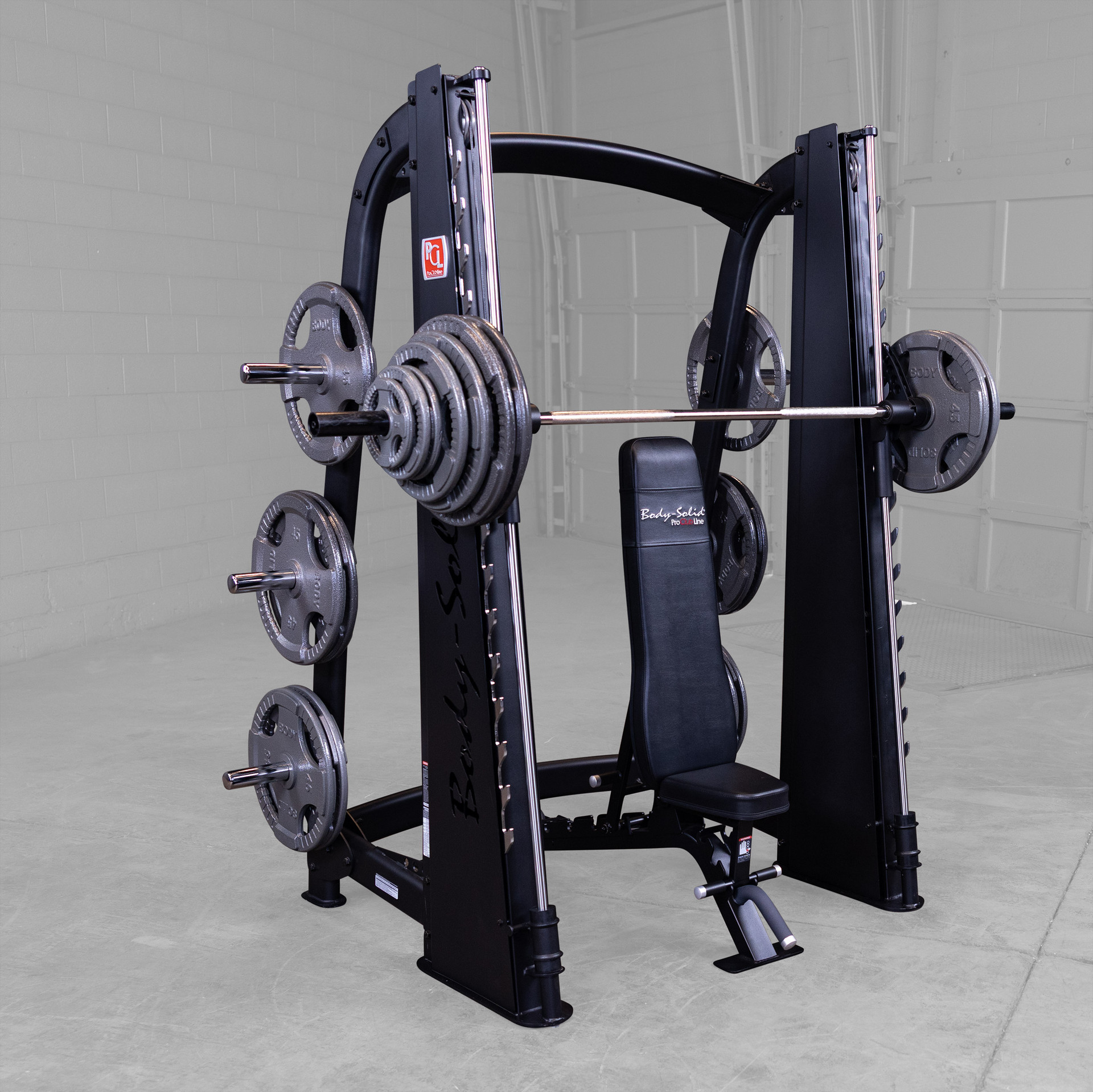 Featuring a reverse pitch and silky smooth vertical carriage, the Body-Solid Pro ClubLine Smith Machine ensures freedom of biomechanically correct movement, enabling users to perform a wide range of routines.