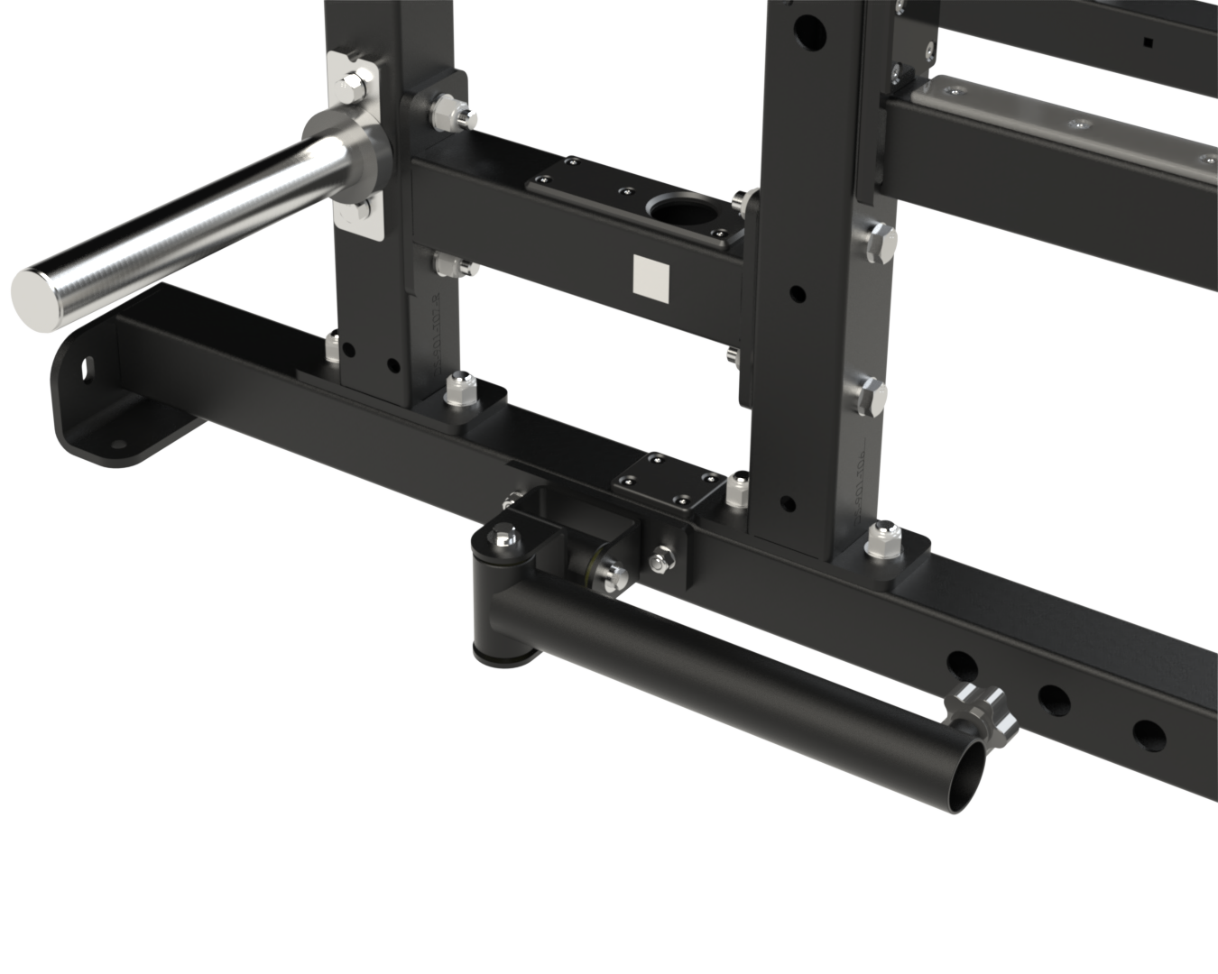 The 3x3x11-gauge base tube comes with eight 1-inch band peg holes pre-drilled and ready for accommodating resistance band training when you add band pegs. Large tube end caps allow you to bolt the rack to the floor, connect racks back-to-back, or configure attachments specific to your facility layout.