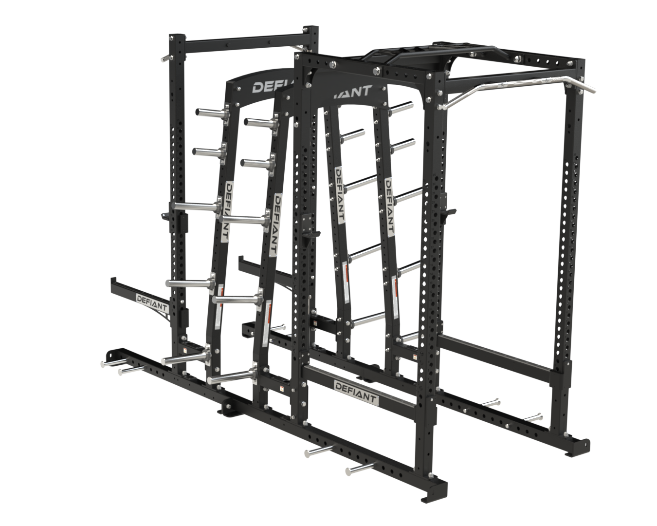 The Defiant DS-904PHR Combo Power Rack / Half Rack Long Base System is the commercial strength equipment solution for: