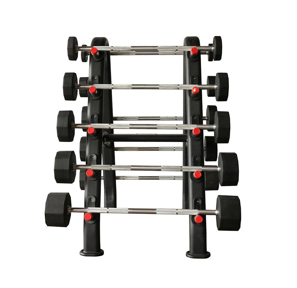 The design of this barbell rack prioritizes maximum stability and efficient user access. The wide angled A-frame design provides exceptional stability, which becomes critical when managing multiple barbells in a high-traffic training environment. The horizontal configuration allows members and clients to quickly identify and access their chosen barbell without confusion or delay. This efficient barbell storage design means faster transitions between exercises, less time spent searching for equipment, and more time spent actually training. The space-saving design maximizes your training floor while delivering impressive storage capacity. Rubber feet protect your gym floors from damage and keep the entire barbell rack stable on any surface, whether you’re setting up on concrete, wood, or specialty gym flooring.
