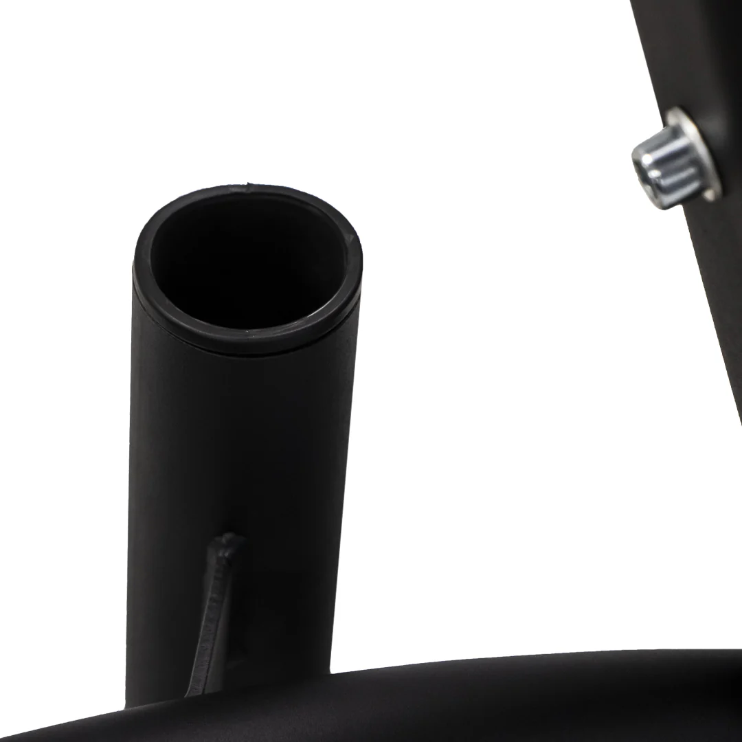The included TKO Olympic Weight Plate Tree with Bar Holders represents professional-grade storage engineered for high-capacity use. Constructed of all-welded steel frame with stainless steel plate horns, this heavy-duty storage solution holds up to 850 pounds of Olympic plates—substantially more capacity than standard plate trees. The built-in bar holder accommodates storage for two Olympic bars, keeping your most-used equipment organized and within immediate reach.